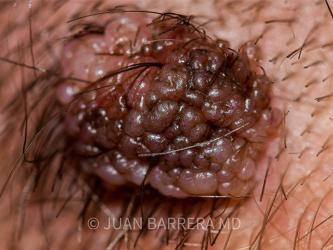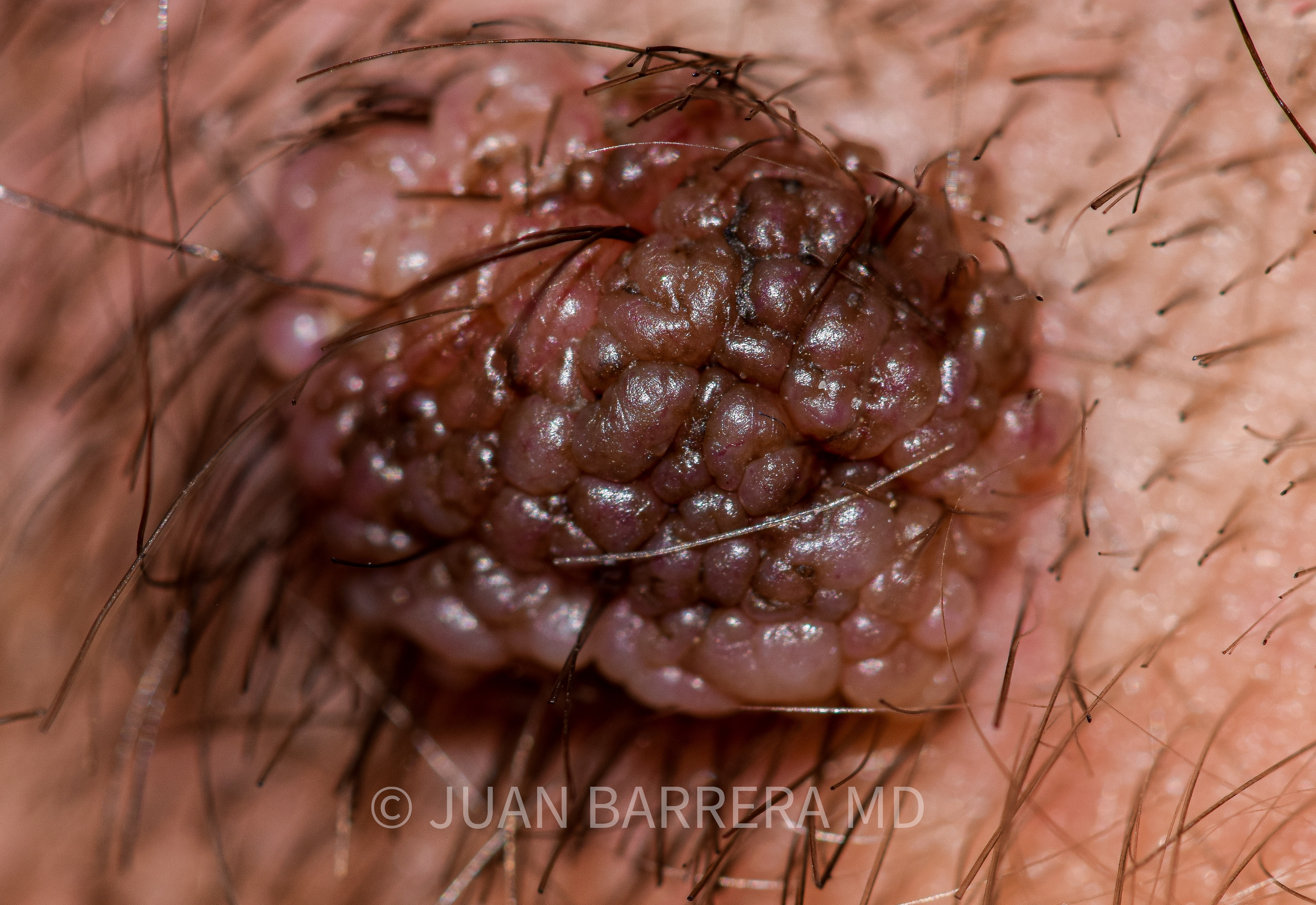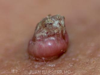 Fotografía con muy buen detalle de las características clínicas de esta lesión en piel.