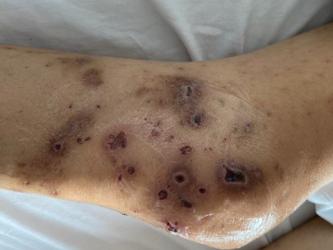 Asiste a valoración por dermatología en donde se solicita perfíl inmunoreumatológico,hemograma, uroanálisis, TSH y PCR con resultados normales. Se consideran como diagnósticos de trabajo mucinosis cutánea vs líquen mixedematoso. Se