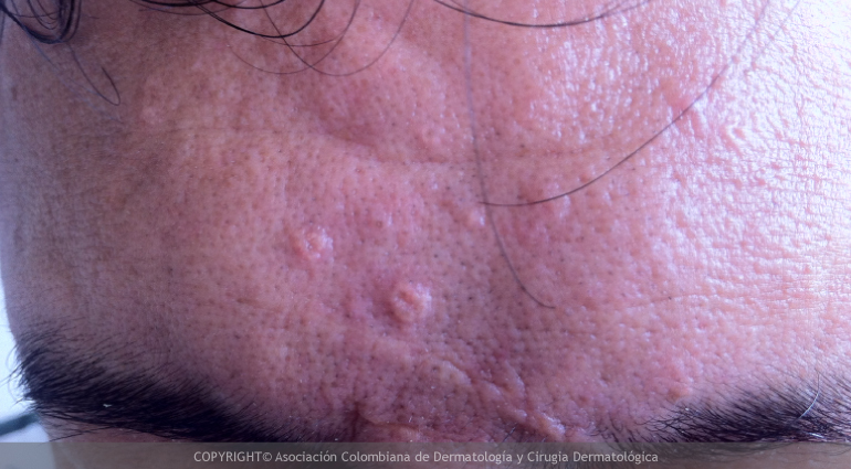 Son tumoraciones benignas de la piel que afectan especialmente a personas de edad adulta; representan básicamente el aumento de tamaño de las glándulas sebáceas normales de la cara. Se presentan en forma de lesiones amarillas elevadas o blanquecinas con una depresión central, de 1 a 5 mm de diámetro distribuidas en cara y frente. Con menos frecuencia pueden encontrarse en espalda, pecho y parte superior de los brazos. Se producen por el excesivo crecimiento de las glándulas sebáceas alrededor de un poro central. Por lo general no producen ningún tipo de síntomas y pueden presentarse una o múltiples lesiones.