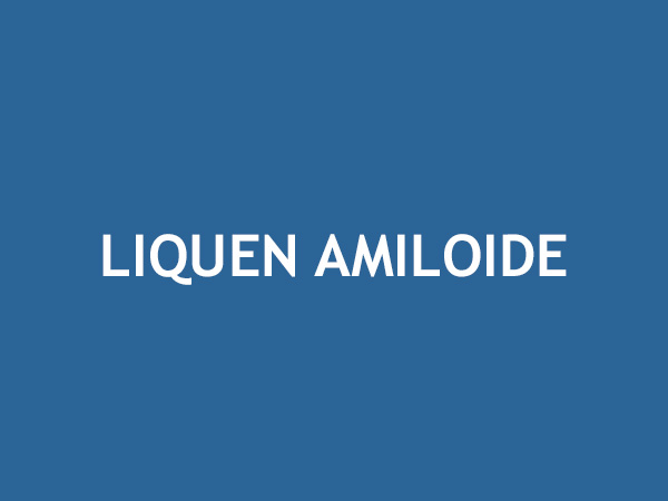 Los pacientes con liquen amiloide presentan además prurito (piquiña). El diagnóstico debe ser hecho por un dermatólogo quien iniciara tratamiento que se basa en medicamentos con una respuesta variable entre paciente y paciente. Al igual que la amiloidosis macular, es una enfermedad que afecta solamente la piel sin comprometer otros órganos.