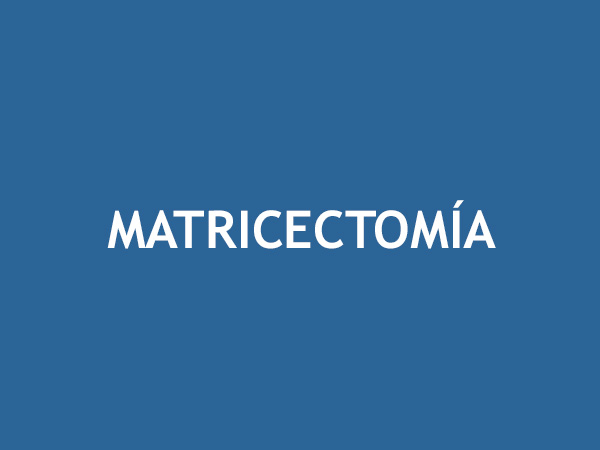La matricectomía es la extracción de éste tejido por un diverso número de patologías, y según la indicación se puede realizar en forma total o parcial. Éste procedimiento puede ser empleado para tratar uñas que se entierran de forma muy repetitiva, para el estudio de pigmentación anormal de las uñas, tumores que requieran evaluarse o extirparse o una lesión que amerite clarificar su diagnóstico, entre muchas otras indicaciones.