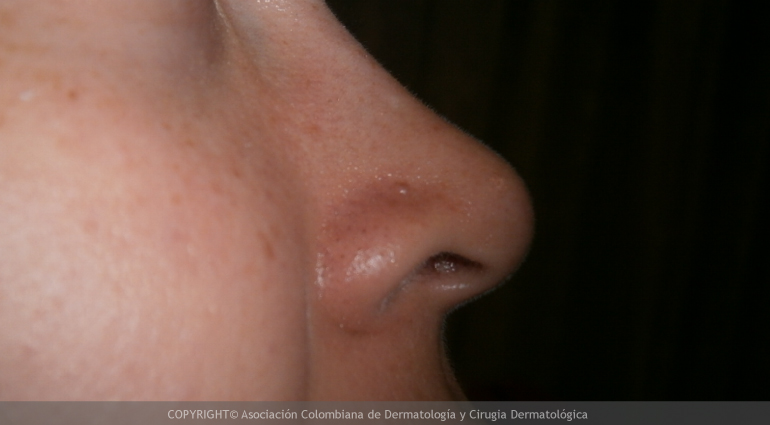 La pápula fibrosa nasal, es una lesión benigna, considerada como una variante de los angiofibromas (tumores benignos formados por colageno y vasos sanguineos).
