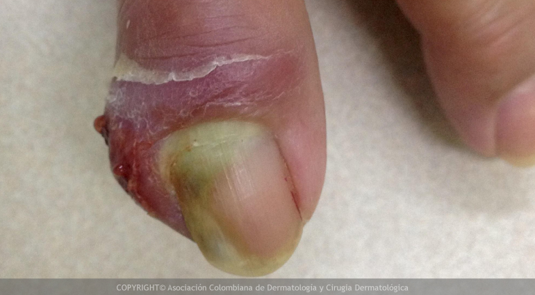 Es una infección aguda del área de la cutícula o alrededor de la uña, secundaria a la entrada de bacterias como Staphylococos o Streptococos, que ingresan a la piel por traumas como morderse o arrancarse los uñeros (onicotilomania), o por cortarse o retraerse la cutícula.