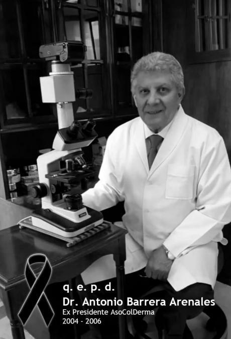 La Junta Directiva de la Asociación Colombiana de Dermatología y Cirugía Dermatológica lamenta profundamente el fallecimiento del Dr. Antonio Barrera Arenales expresidente de nuestra Asociación y destacado profesor en las áreas de Dermatopatología y Dermatología Pediátrica.