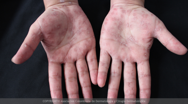 Se puede asociar a urticaria y vasculitis (inflamación de los vasos sanguíneos).