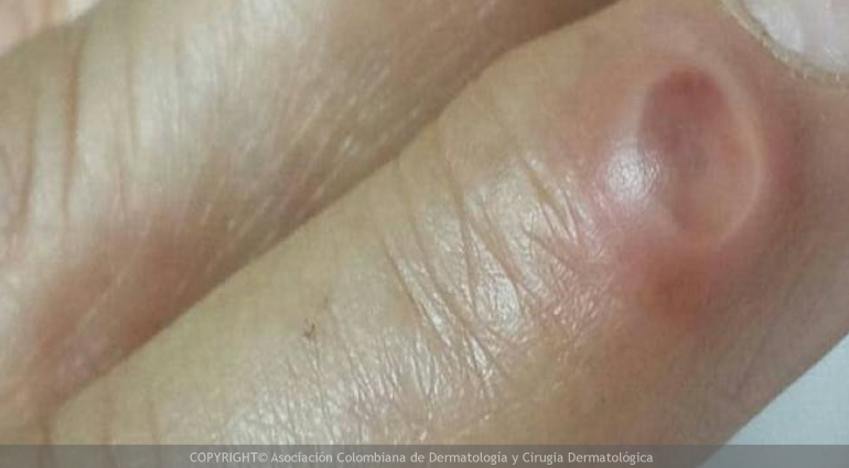 Es el tumor de las uñas más común. Se presenta generalmente en mujeres de mediana edad y se localiza cerca a la cutícula (pliegue proximal) de la uña.