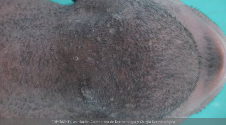 La pseudofoliculitis de la barba, ha sido llamada en el argot popular “pelo encarnado”. Es una dermatosis que ocurre con frecuencia en hombres que se afeitan la cara, en quienes el vello duro y rizado tiende a curvarse por la dirección del corte, y se reintroduce en la piel, lo que genera una reacción inflamatoria en cada uno de los sitios donde la penetra. Ocurre con preferencia en hombres de pieles oscuras que tienen barba muy pobladas, gruesas, con vellos rizados, que se pasan excesivamente la cuchilla de afeitar, lo que puede agravar el problema por mayor irritación. A sí mismo el afeitado debe realizarse en dirección a la salida del pelo ya que afeitar en otras direcciones genera mayor encurvamiento y mayor penetración del pelo en la piel. Puede producir picor, dolor, aparición de pequeños quistes , y en los más crónicos pigmentación de la piel y cicatrices. Dentro de los tratamientos deben incluirse medidas generales como el afeitado en una sola dirección, con el menor número de pasadas posibles de la cuchilla, exfoliantes cosméticos de forma suave, el lavado con jabones no irritantes, pero es indispensable que asista a su dermatólogo para determinar si requiere de tratamientos más específicos para su condición particular. No es prudente automedicarse.
