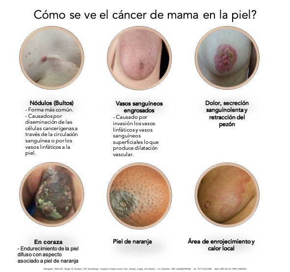 Anualmente 1.7 millones de mujeres son diagnosticadas con cáncer de mama a nivel mundial. 6-10% de los pacientes tienen un compromiso inicial en la piel y otro gran porcentaje presenta complicaciones cutáneas.