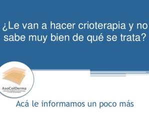 La crioterapia (tratamiento con frío), también conocido como criocirugía, es un excelente método usado en el consultorio, que no requiere hospitalización y con el que se destruyen tumores benignos y malignos de la piel, lo mismo que esos vasitos en forma de arañitas que aparecen en las mejillas...