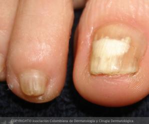 La onicomicosis subungueal distal es la más común, inicia con color blanquecino a...